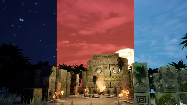 Additionally, I curated native flora, such as Bayonet and royal palm trees, complementing the Mayan ambiance. Further optimizing the environment, I added fire FX to the firepit.