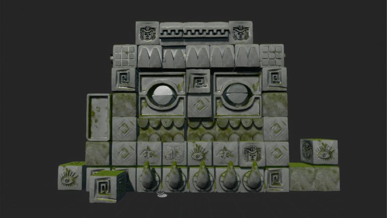I crafted initial grey box assets as proxy modules, placing them within the scene to establish the temple’s structure. Employing Zbrush’s Alpha tool, I incorporated Anzac symbols, efficiently streamlining the workflow without compromising intricacy. To enrich the authenticity, I dedicated attention to textures and tillable patterns and added moss to replicate the weathered ruins’ appearance.
