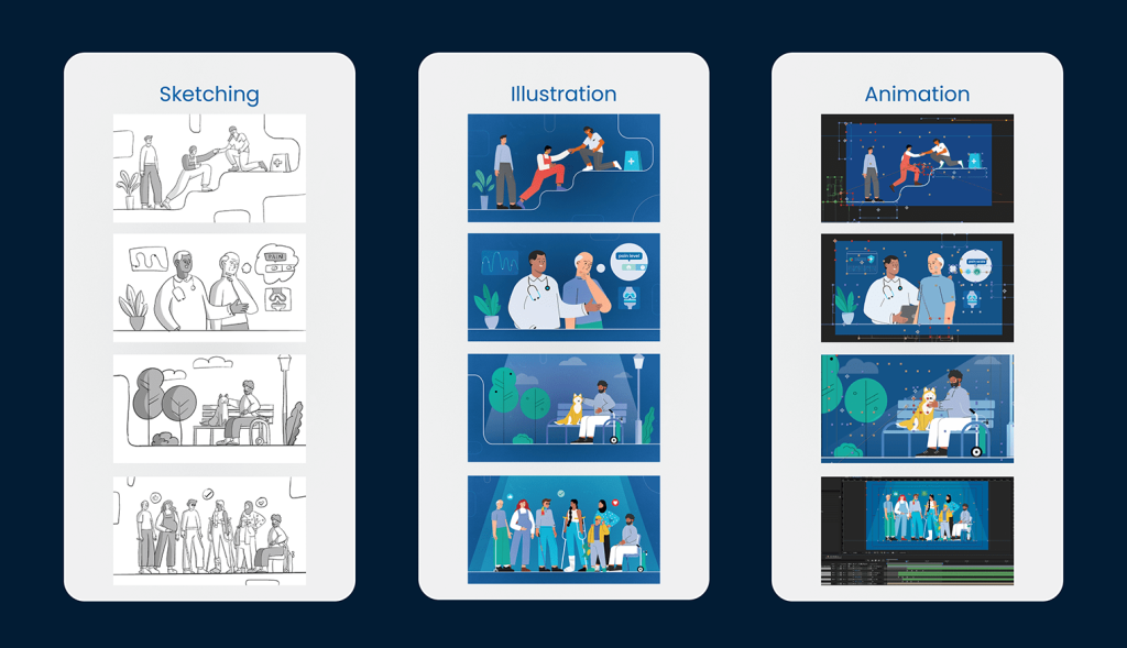 For this project, I created an entire library of characters that included a wide range of ethnicities, ages, and backgrounds to represent the diverse patient population that Northern Health serves.